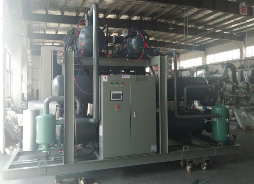 酒精冷水機超低控溫制冷機組出水溫度-40℃~-120℃,可提供-40℃~-120℃酒精或二氯甲烷溶液冷凍水。采用二元復疊或三元復疊螺桿式制冷系統,能效比高,運行穩定等特點。